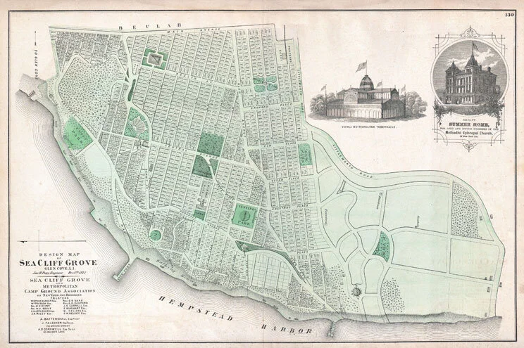 The building housing the Sea Cliff Village Museum, Village Library, and Village Hall complex was built in 1913 as the Sea Cliff Methodist Church. This brick building replaced an earlier church, built in 1878 as the Methodist Episcopal Church. Thirteen families who lived in the unincorporated village of Sea Cliff (which was not founded until 1883) formed the Sea Cliff Methodist Episcopal Church in 1874, originally meeting in a chapel on Fourteenth Avenue. The current brick building served as the Methodist Church until 1968, when the church built a new building on Downing Avenue and the village acquired the property. The museum is located in the former parsonage adjacent to the former church itself.